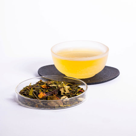 Treat yourself to a sip of the tropics with Fruit Bowl Green & White Tea—your perfect balance of fruity sweetness and calming floral notes.