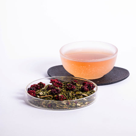 We infuse Organic BanCha with Organic Blackberry flavor, and blend in freeze dried blackberries, native to Ohio, with Organic Lemon Peels and Organic Sage, to create a well balanced green flavored tea, that is fruity, citrusy, and slightly earthy. Flavor Profile: Balance, sweet, fruity, citrusy, slghtly herbal Caffeine: 35-75mg/8oz cup Health Benefits: All green teas contain powerful antioxidants known for fighting disease, specifically heart disease. Tea is a zero-calorie beverage, making it an ideal, delicious substitute for high-calorie drinks like soda and energy drinks. Ingredients: Organic Japanese green tea.freeze-dried blackberries, organic lemon peel, organic sage, organic flavoring