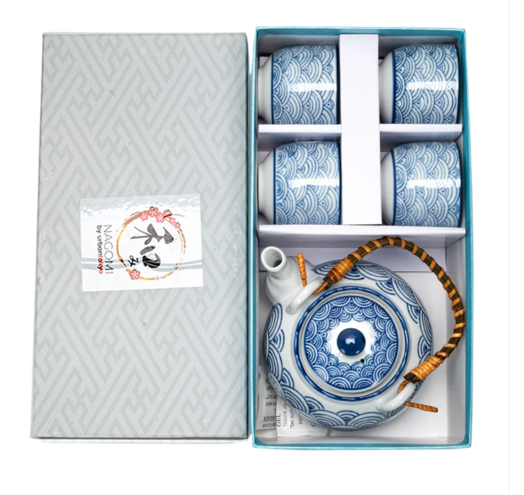Japanese Seikaiha Waves Tea Set 22oz Tea Pot with 4 Cups