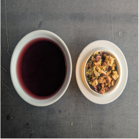 Ingredients: Organic Yerba Mate, apple pieces, mango pieces, organic cocoa nibs, organic hibiscus, orange peel, organic ginger root, organic mango flavor