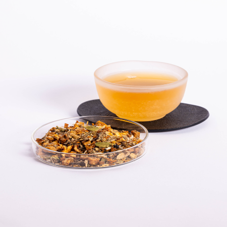Ingredients: apple, orange peel, lemon peel, cinnamon, ginger, black pepper, marshmallow root, cardamon, blessed thistle, fenugreek.