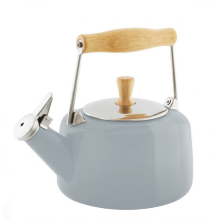 Central to Chantal’s Scandinavian Collection is the 1.4 Qt. Sven teakettle. Clean lines and natural wood help create a design that is distinctly northern European. The blond wood handle and knob are made of 100% natural Rubberwood, a tropical tree that grows in the warm climate of Asia. The wood stays cool to the touch when boiling water and the light color beautifully accents the enamel finish of the teakettle’s body.