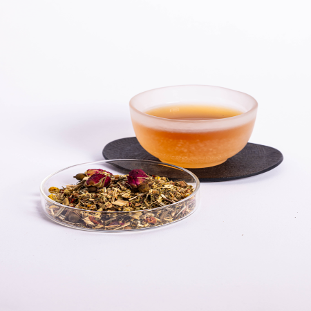 Ingredients: Chamomile, saffron, licorice, ginger, fennel, rose, spearmint, rosehips, lemongrass, Tulsi, natural orange flavor.
